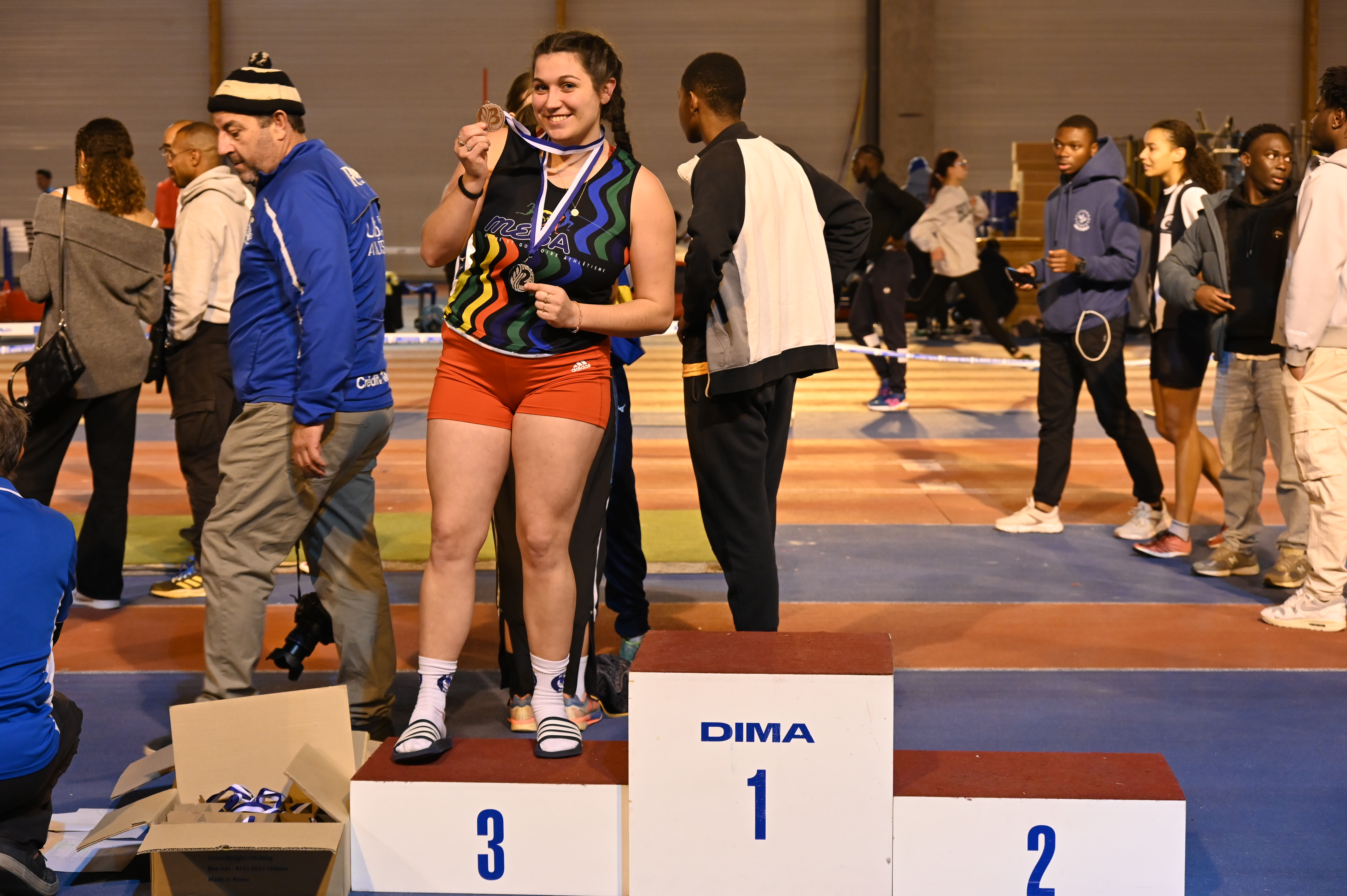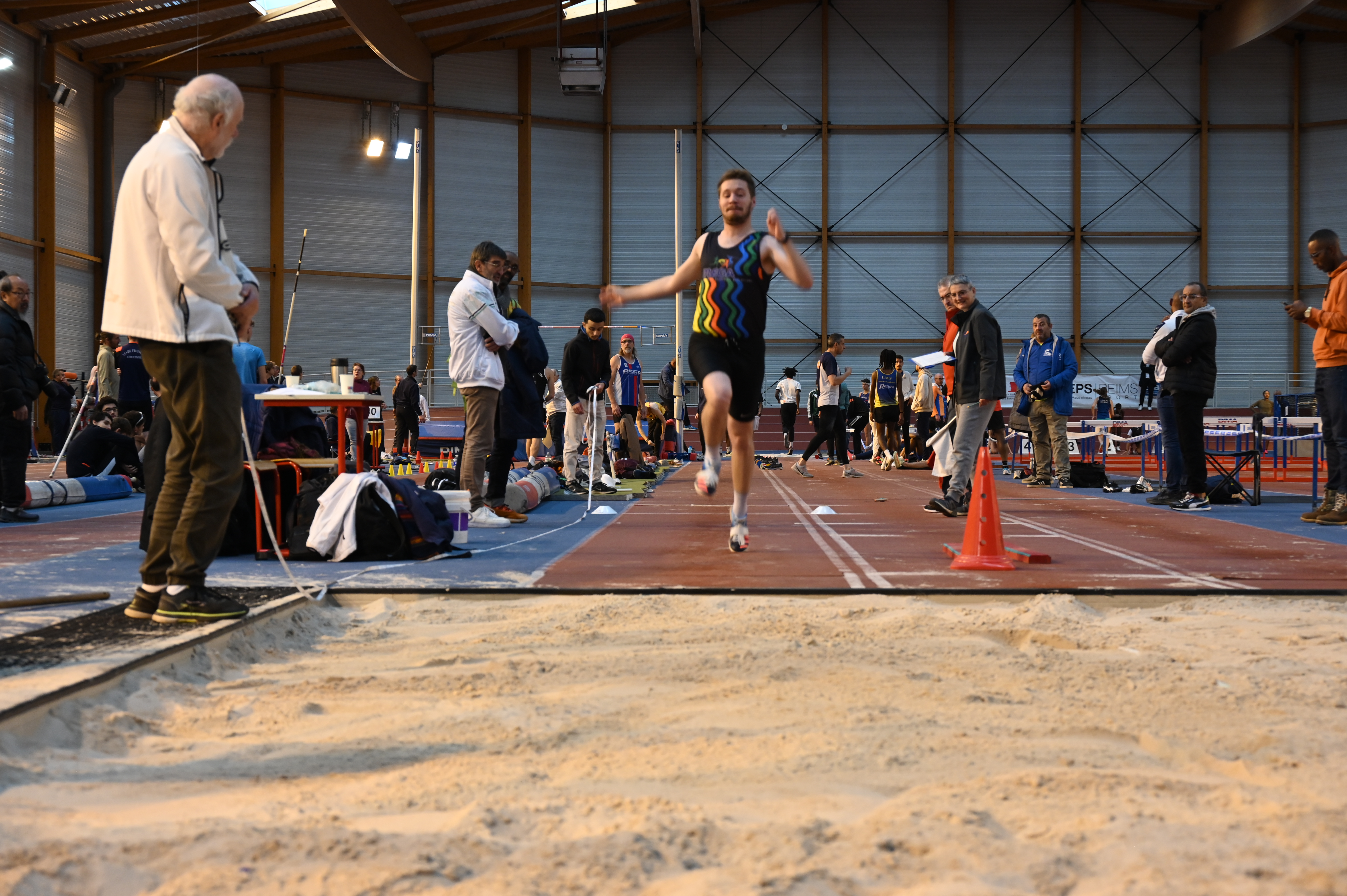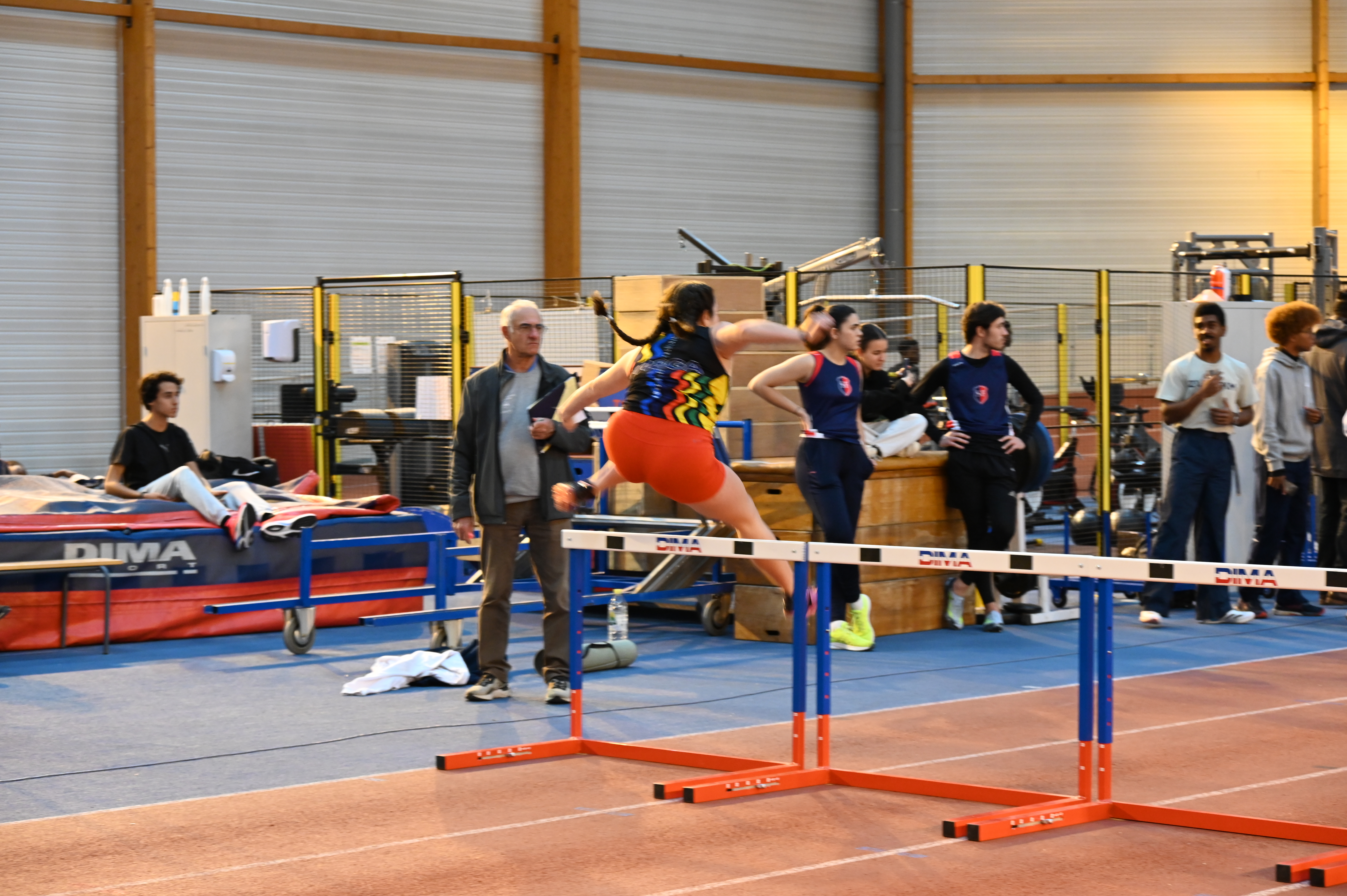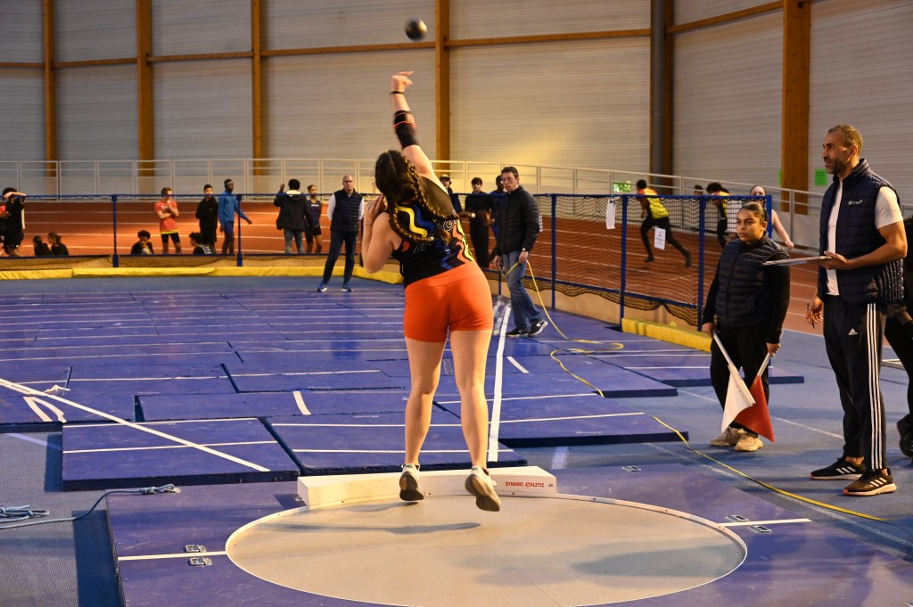 Pour continuer cette matinée, Elina et Emilien se préparent pour débuter leurs compétitions. Le triple saut pour Emilien et les 60m haies pour Elina, Emilien terminera au pied du podium avec 9m80. Quant à Elina elle finira 2e des qualifications en 11.69, lors de la finale elle terminera première en 11.63 (chronos manuels) suite à un bug à la photo-finish mais ne voulant pas refaire une course seul pour avoir un temps officiel, conserve le titre de championne départemental mais n’a pas de temps affiché.