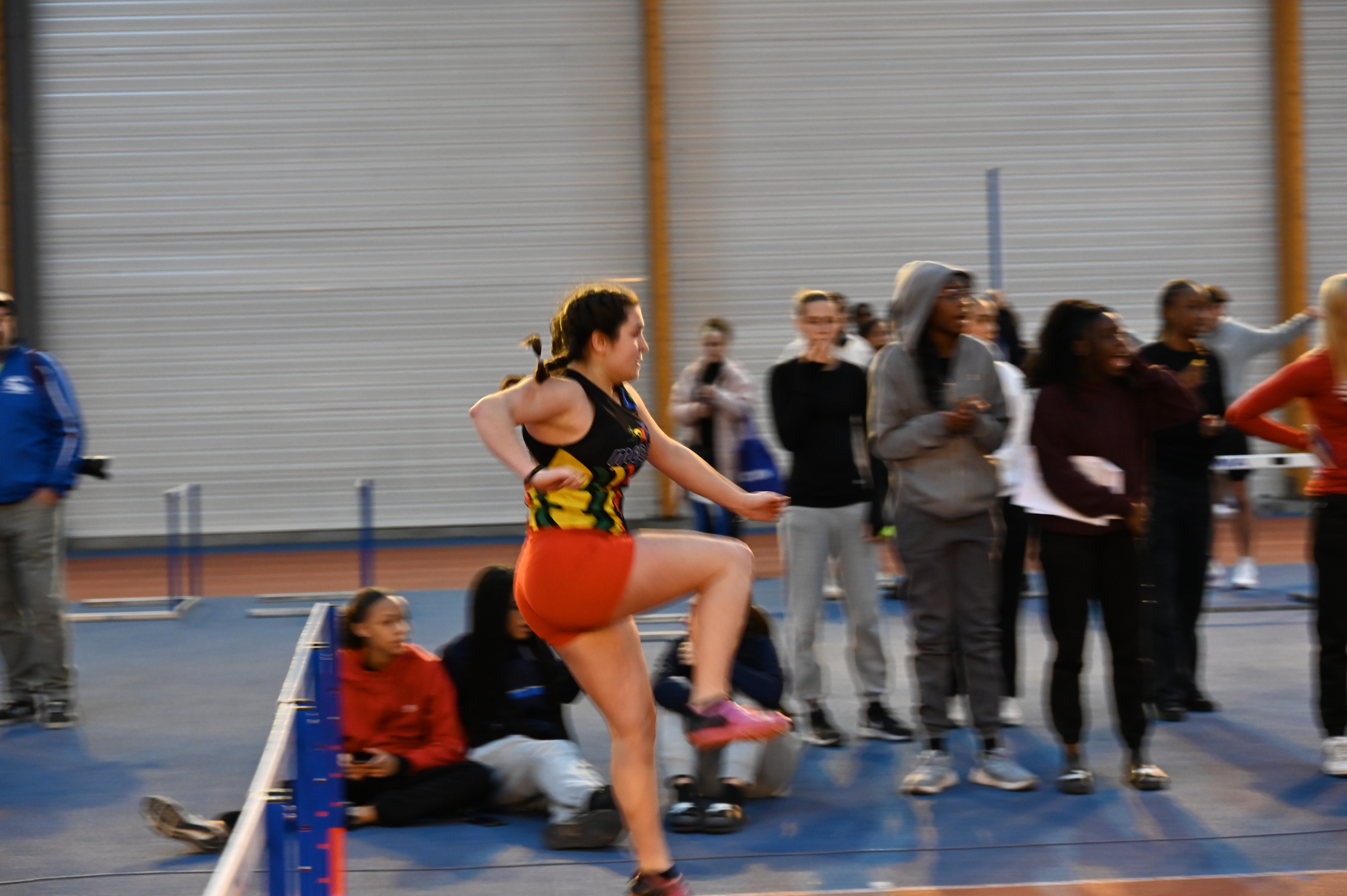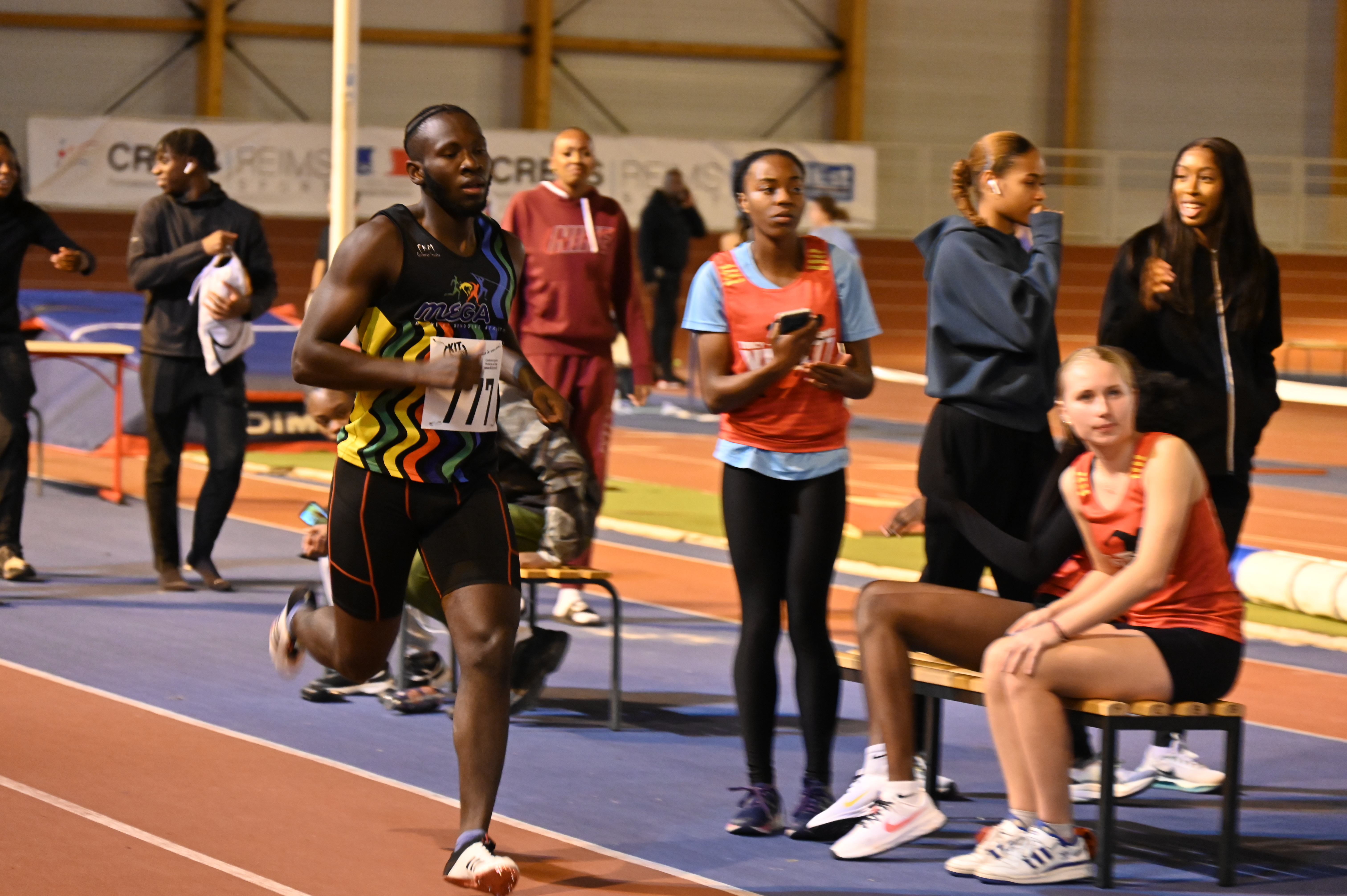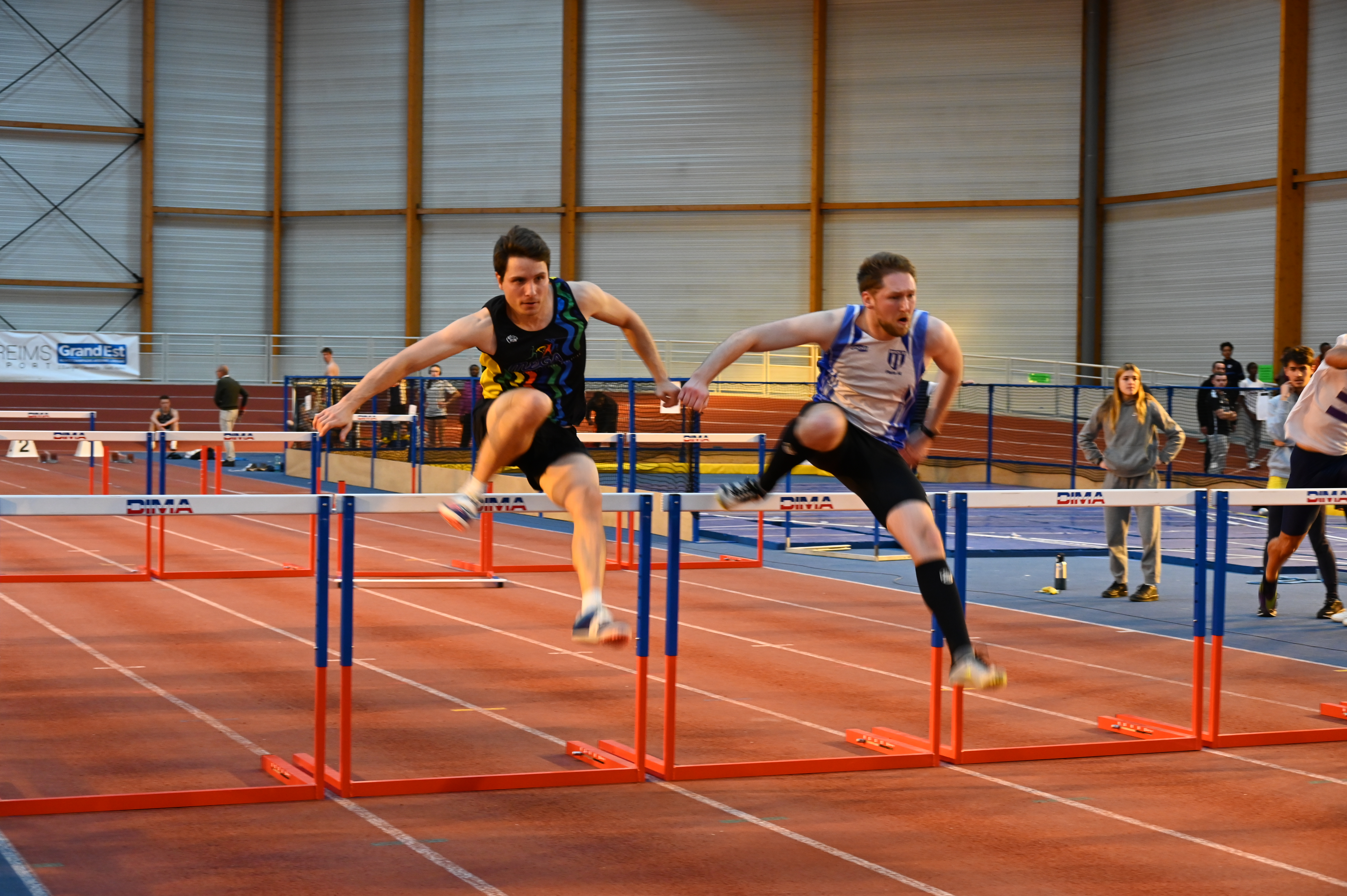 Pour continuer cette matinée, Elina et Emilien se préparent pour débuter leurs compétitions. Le triple saut pour Emilien et les 60m haies pour Elina, Emilien terminera au pied du podium avec 9m80. Quant à Elina elle finira 2e des qualifications en 11.69, lors de la finale elle terminera première en 11.63 (chronos manuels) suite à un bug à la photo-finish mais ne voulant pas refaire une course seul pour avoir un temps officiel, conserve le titre de championne départemental mais n’a pas de temps affiché.