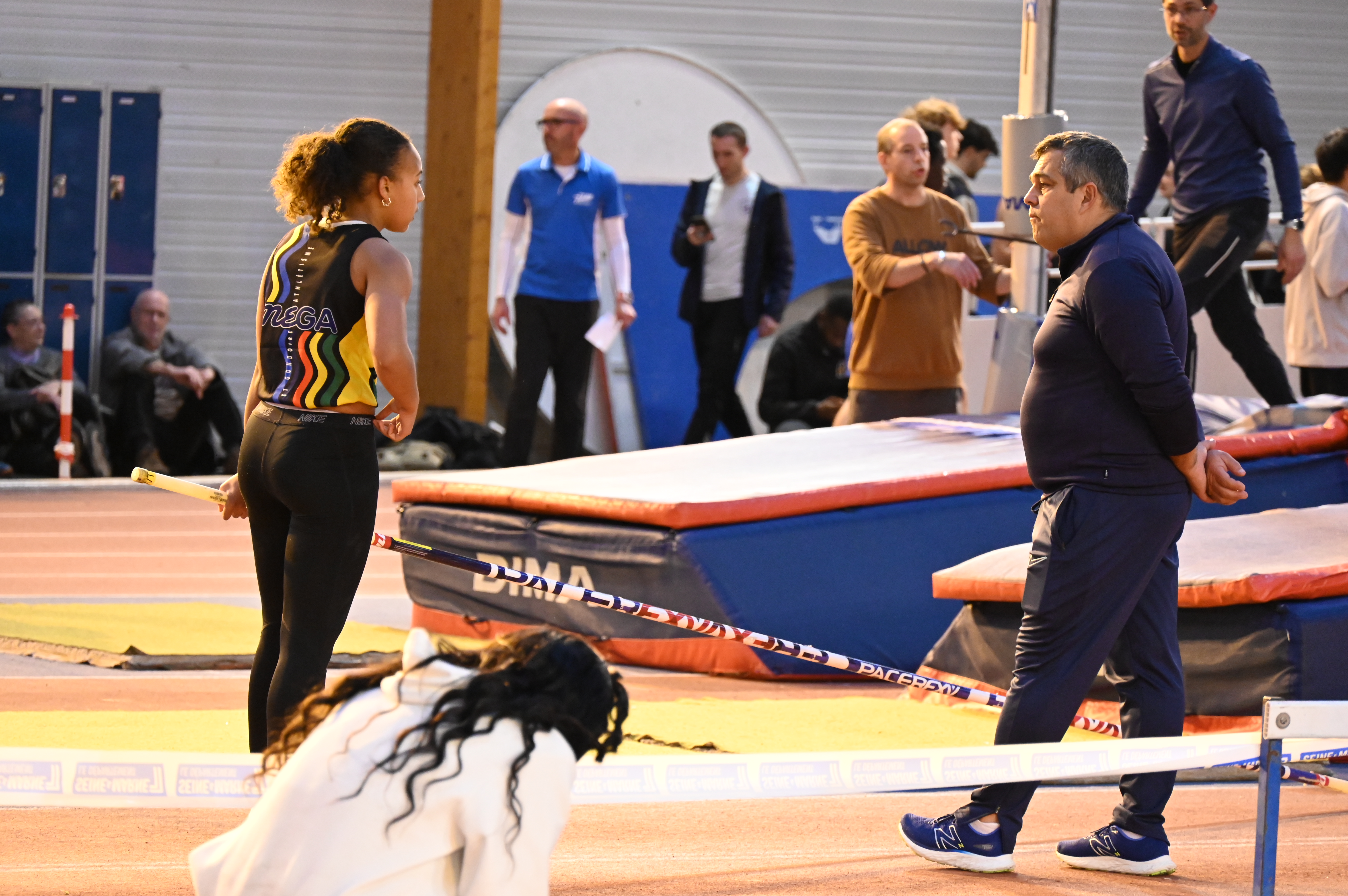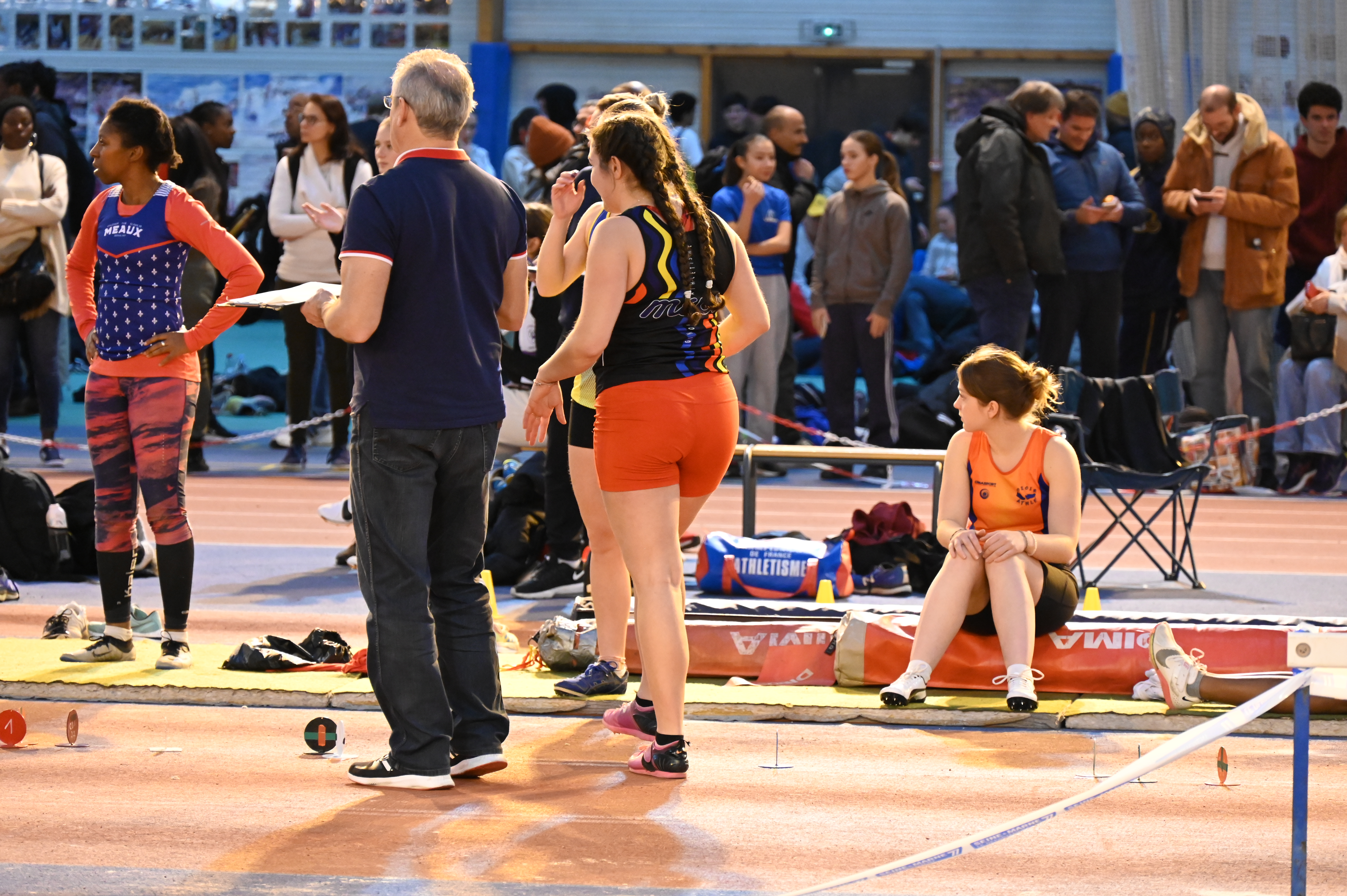Place aux perchistes féminines avec Emilia et Anna, qui termineront tous les deux premières de leur catégorie, avec pour Anna un saut à 3m10 et pour Emilia un saut à 3m00. En parallèle de la perche se déroule le concours de longueur féminin avec Elina, qui réalisera 4m18, une 3e place sur le podium.