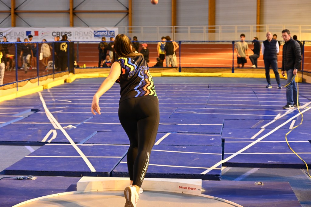 Avant le 200m petit détour par le concours de poids sur lequel nous retrouvons Carole Anne et Elina, une première pour les 2 qui n’ont jamais pratiqué le poids.