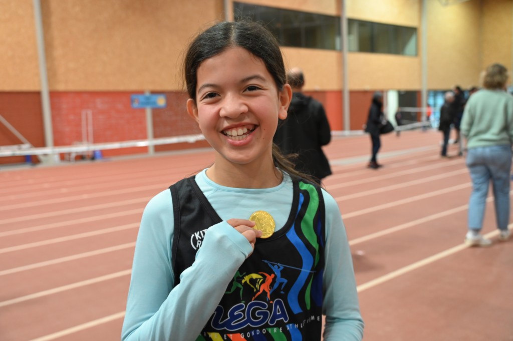 Jeanne toujours le sourire aux lèvres, a réalisé pour sa première année en benjamine, 52 points et finit 37e sur 100. ( 8 »28 au 50m, 5m71 au poids et 3m12 à la longueur)