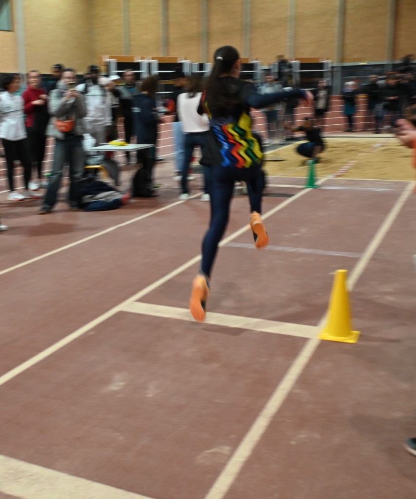 Pour Erine, ce triathlon est signe de record, pour sa deuxième année en benjamines, elle réalise 5m72 au poids, elle finit 3e de la compétition au 50m en 7 »60 et finit 1e au triple en 9m77. 3 épreuves 3 records personnels. Elle termine le triathlon en 83 points qui lui offre une 6e place.