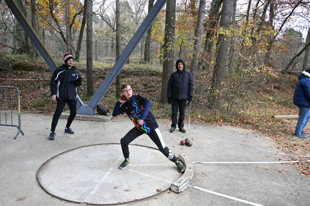 Direction fontainebleau pour les garçons, le dimanche c’était les triathlons des minimes. Pour Thibaut, Gabriel et Swen, le programme se compose du poids (4 kilos), du 50m et de la longueur, seul Victor fait le choix de faire 2 courses avec 50m et 50m haies et la longueur.