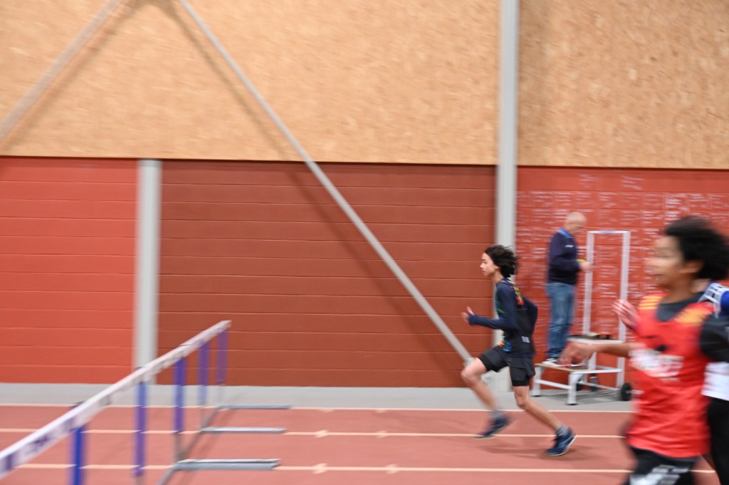 Victor, un athlète expérimenté également, et qui comme Swen réalise 3 records personnels pour une première année en minime. Les haies sont passées de 65 à 84 cm de hauteur et pourtant il améliore son record en 9 »15. En 50m il passe sous la barre des 7″ en 6″99 et en longueur malgré une impulsion du mauvais pied il améliore quand même son record à 4m71.