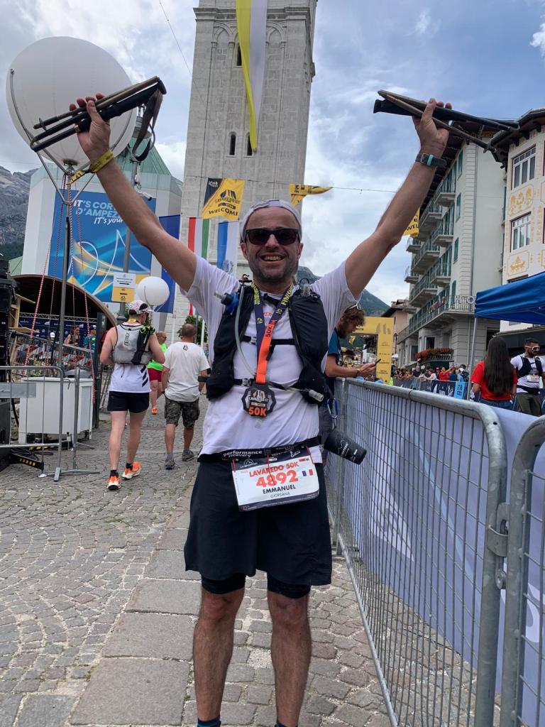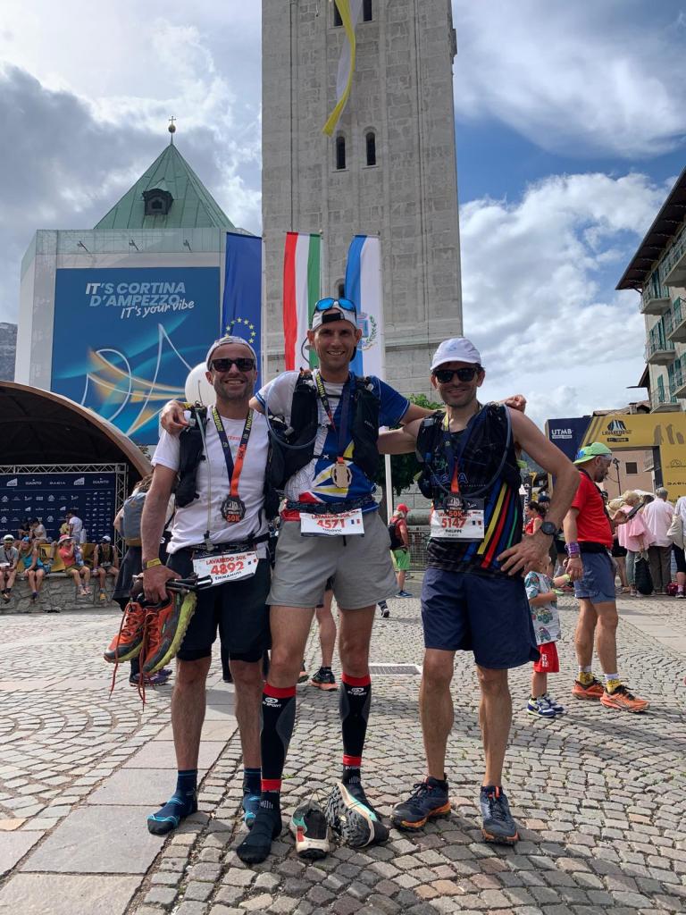 A tout seigneur tout honneur, commençons ce récit de course par notre Julien, alias Juju, le seul à avoir osé se mesurer aux Tre Cime, classées au patrimoine de l’Unesco, sur le parcours 80K.
